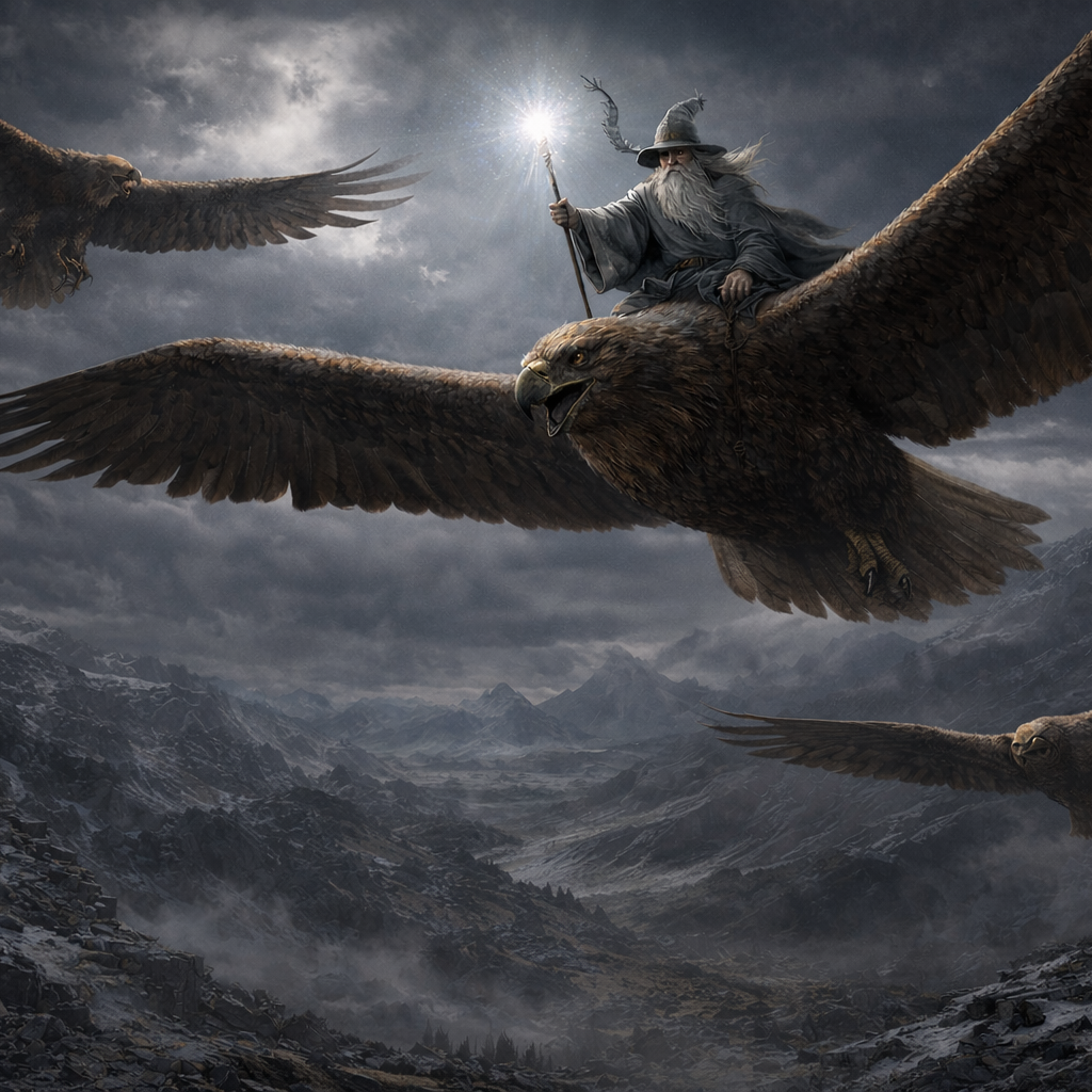 After escaping Carn Dûm by unleashing a cave troll to sow chaos, the party fled into Angmar. Ambushed by wargs, they were saved by Gandalf and the Great Eagles, who carried them to the Ettenmoors. Now free, they must choose: seek Rivendell, return home, or continue on elsewhere to press forward in the hunt for the minor seeing stone.
