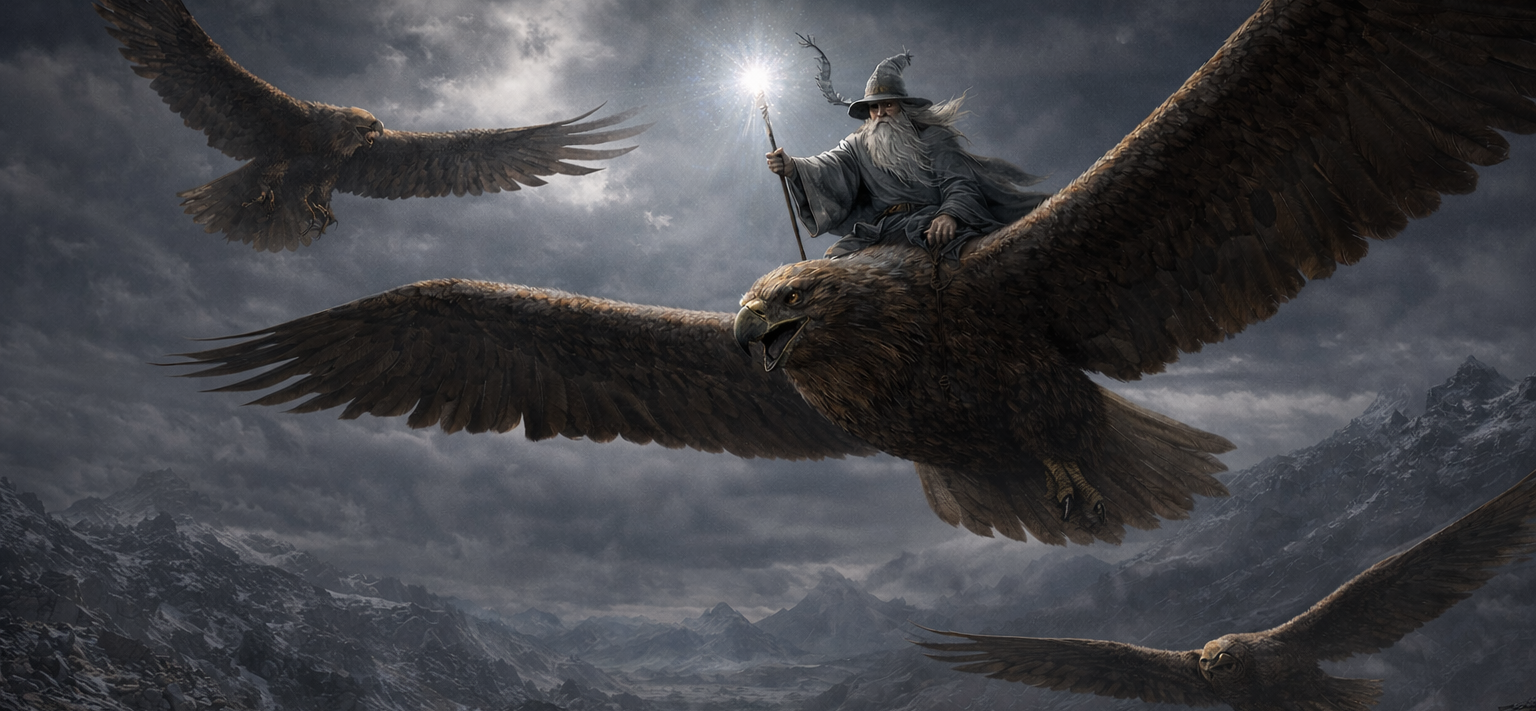 After escaping Carn Dûm by unleashing a cave troll to sow chaos, the party fled into Angmar. Ambushed by wargs, they were saved by Gandalf and the Great Eagles, who carried them to the Ettenmoors. Now free, they must choose: seek Rivendell, return home, or continue on elsewhere to press forward in the hunt for the minor seeing stone.